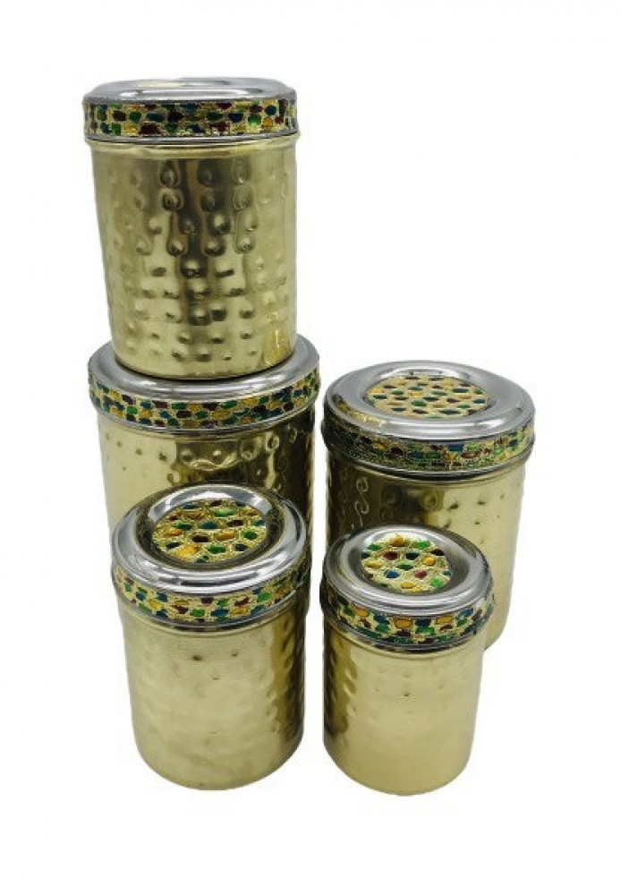 علب بهارات حب رمان مطرز ذهبي طقم 5حبة صغير