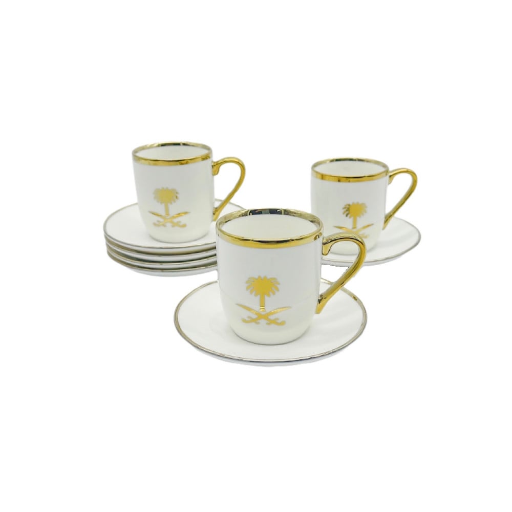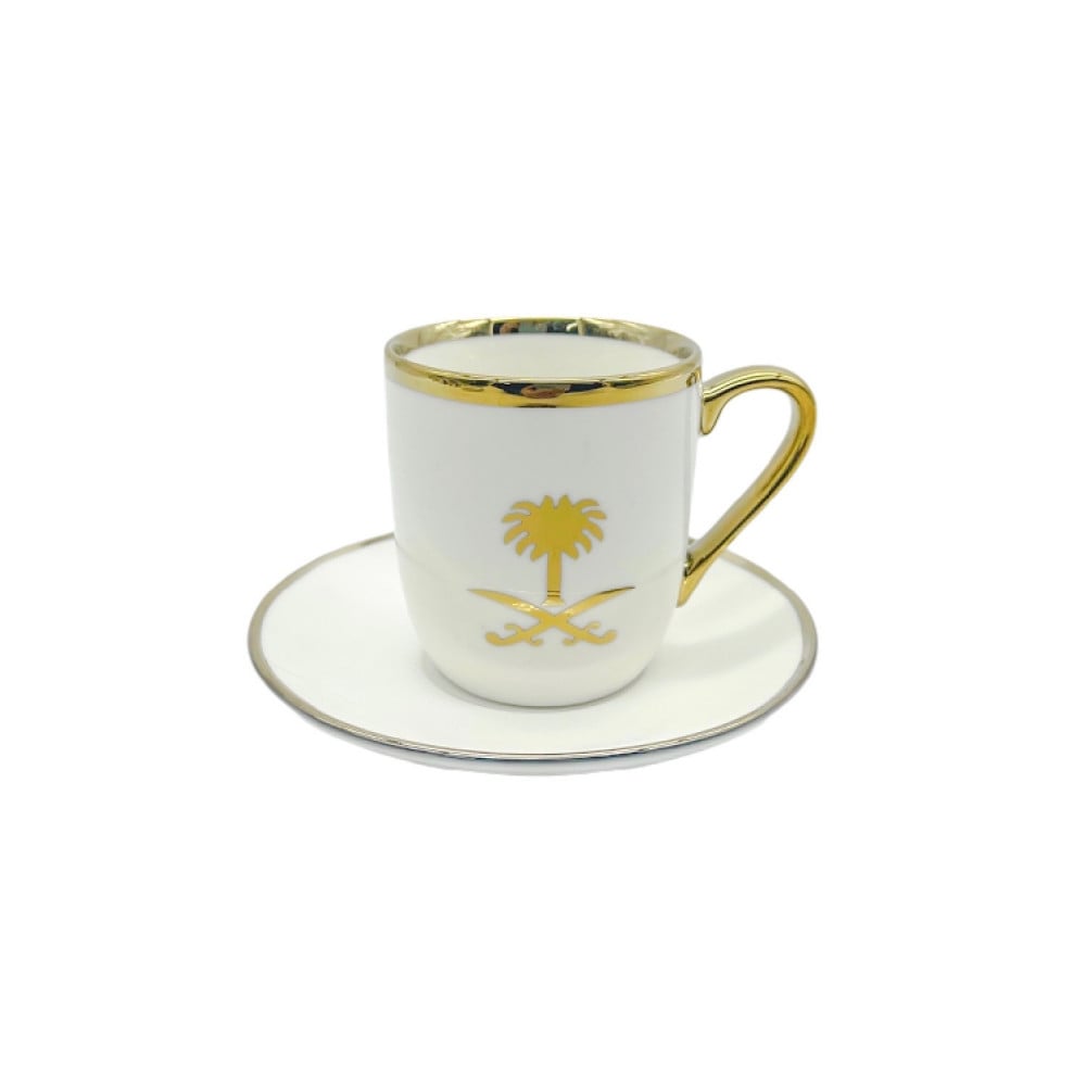 كوب سيفين و نخلة ذهبي سيراميك بصحن