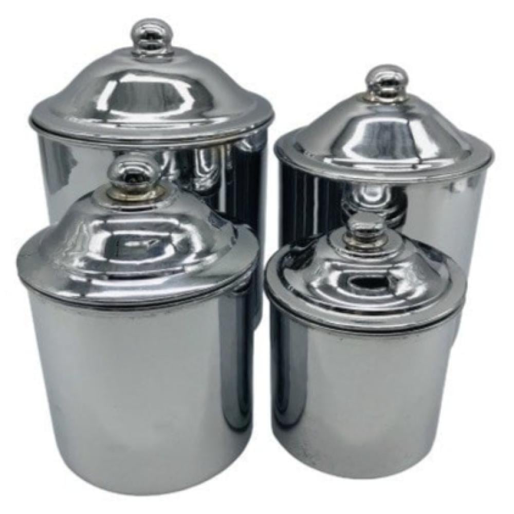 علب سكر وشاي ستيل لماع طقم 4 حبات